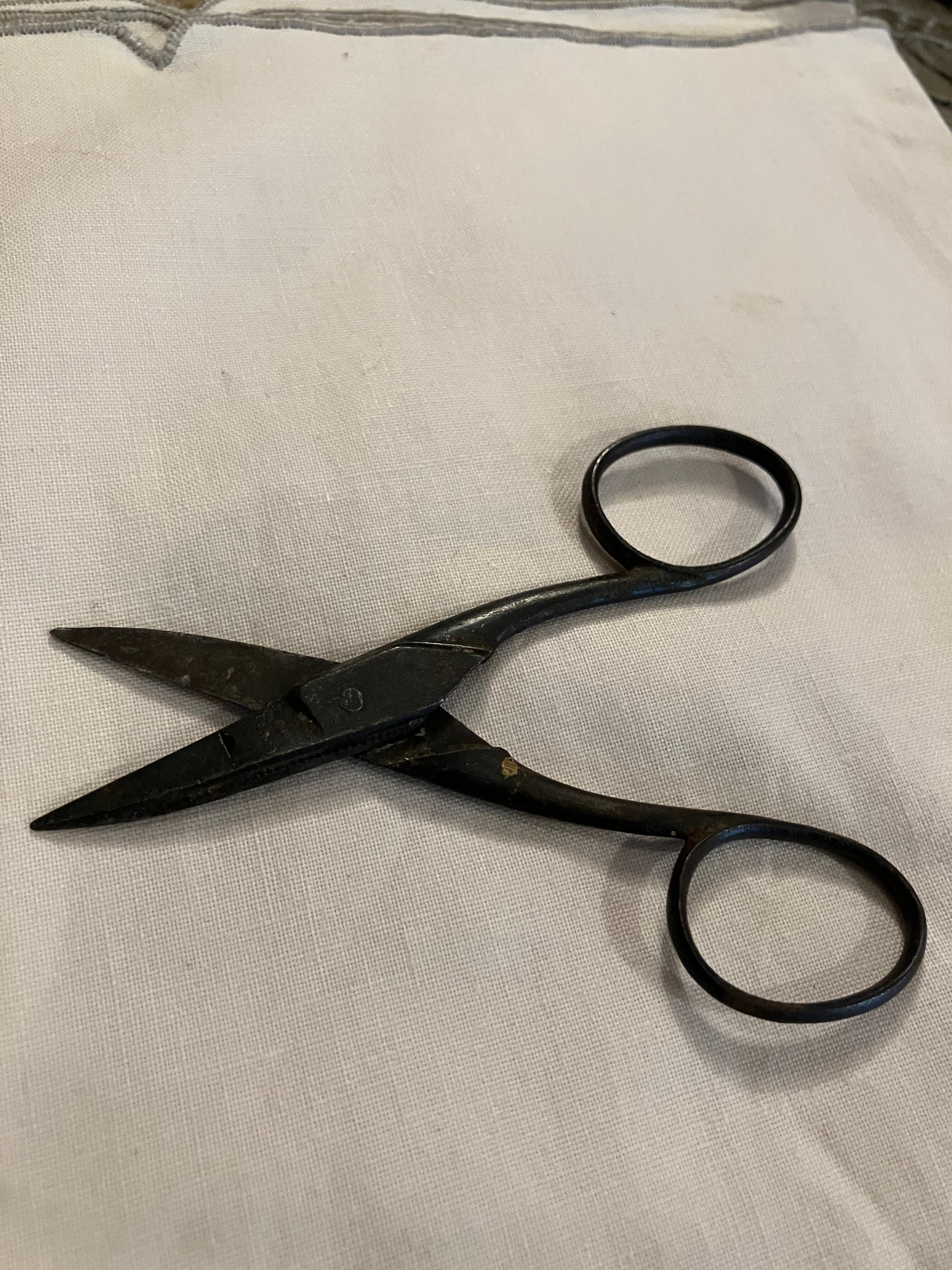 古い物になりますのでサビ、ゆかみ、糸切りなのに糸がきれないかも?などありますがとても味わいのあるハサミです