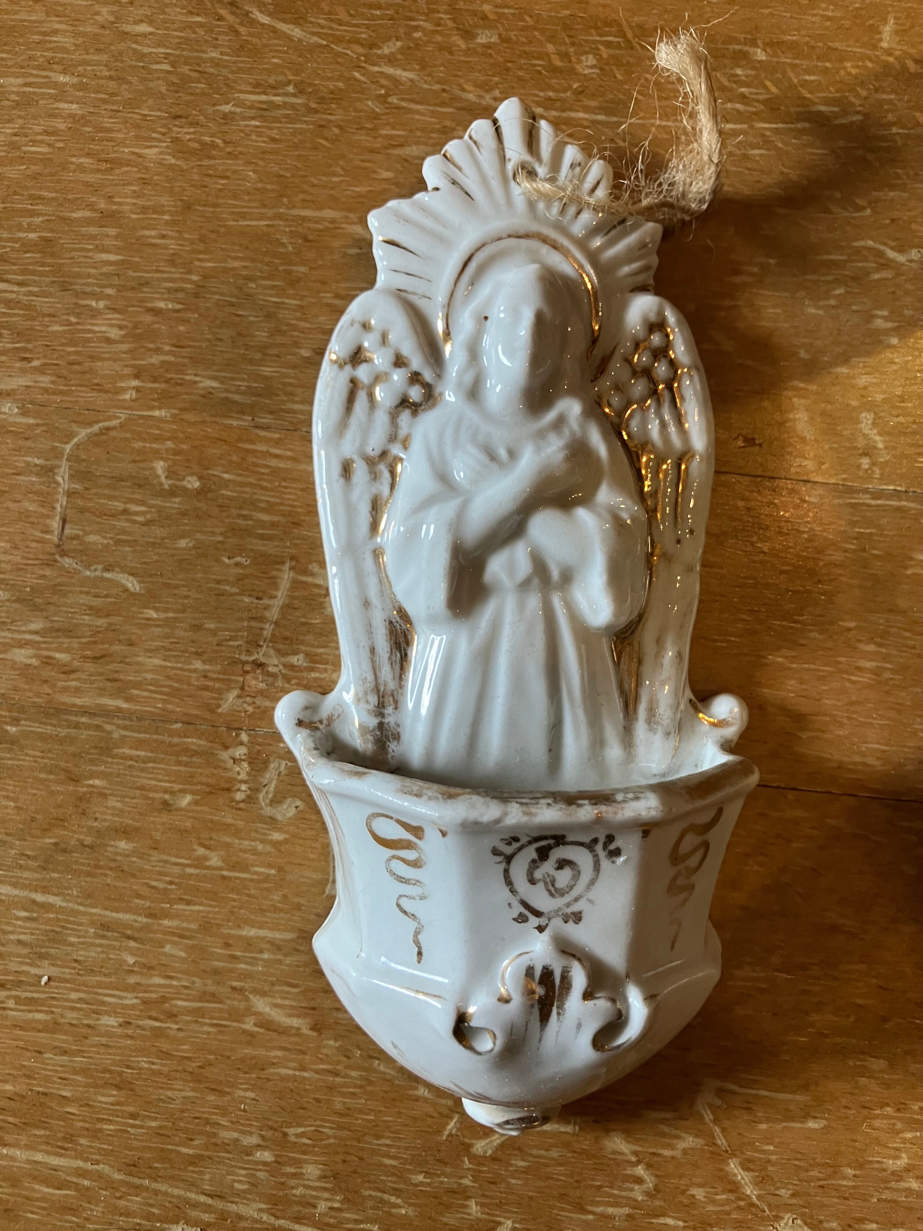 ゴールドが模様がとても美しく豪華な陶器製のベニチェ(聖水盤)です